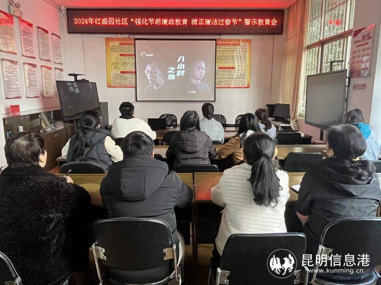 昆明信息港讯 记者周硕 近日,为严明节日纪律,强化干部职工纪律意识、规矩意识和责任意识,筑牢拒腐防变的思想防线,红盛园社区召开“强化节前廉政教育 清正廉洁过春节”警示教育会。