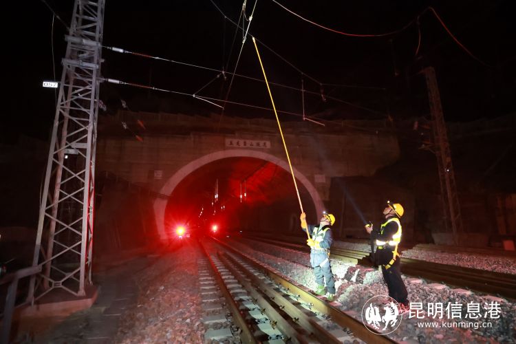 昆明信息港讯 记者上官艳君 为了不影响白天铁路的正常运行,很多维护工作都会安排在夜间的“天窗”进行。2月5日,中国铁路昆明局集团公司广通工电段丽江综合维修车间开展工务、电务、供电三专业联合一体化“天窗”作业,对丽香铁路新尚站内道岔及接触网设备进行全面整治。