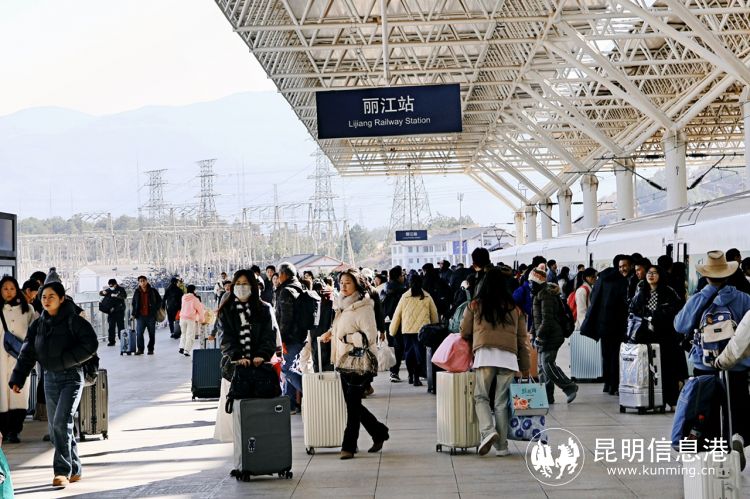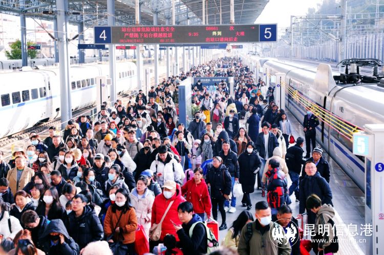 据悉,2月11日,国铁昆明局计划开行客车408列,其中省际间直通169列,云南省内239列。节日期间,国铁昆明局最大能力配置大理、丽江、西双版纳等旅游热门方向运能,昆明至大理方向节中日均开行动车72列,节日首尾客流高峰最高可达76列,重联36列;昆明至西双版纳方向最高开行动车82列、重联16列。春运以来,截至2月10日,国铁昆明局累计发送旅客506.7万人,同比增加194.5万人,增长62.3%。