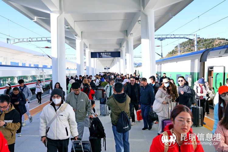 节日期间,国铁昆明局最大能力配置大理、丽江、西双版纳等旅游热门方向运能,昆明至大理方向节中日均开行动车72列,节日首尾客流高峰最高可达76列、重联36列;昆明至西双版纳方向最高开行动车82列、重联16列。(图片由通讯员凡月 杨紫轩 朱万祥 供图)
