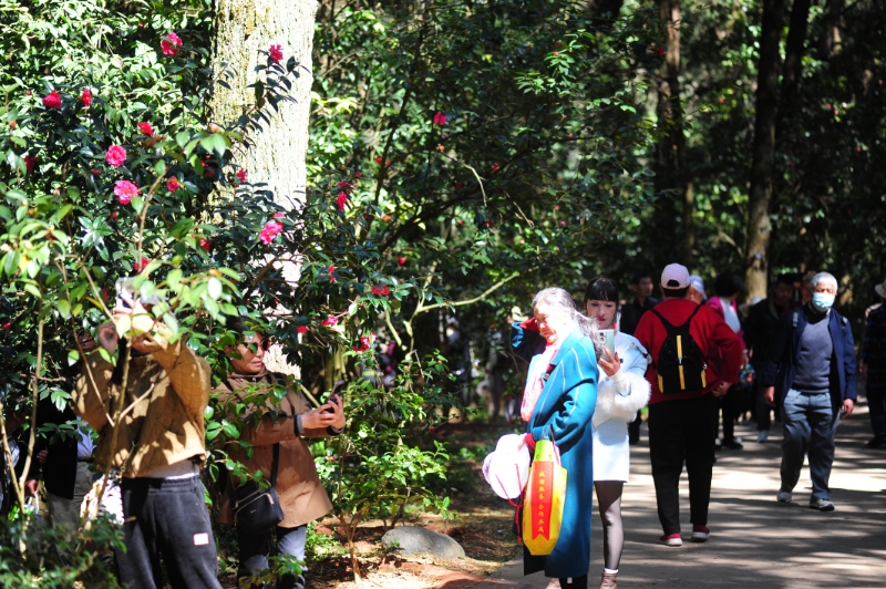 当下,除了金殿庙会,景区内的40万余株山茶花正值盛花期,游客享受完庙会的欢愉之后,纷纷漫步到植物园区踏春、赏山茶、探春花。据介绍,金殿茶花的观赏期可持续到3月中旬。