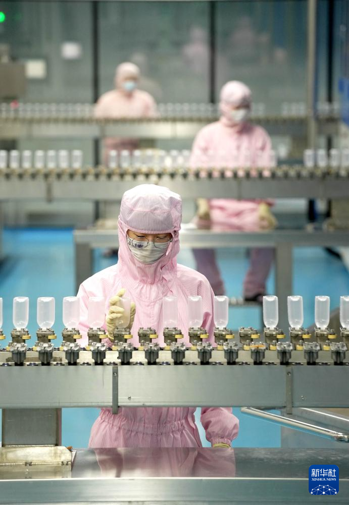 2月18日,工人在河北省石家庄四药有限公司药品制剂生产线上忙碌。新华社发(梁子栋摄)