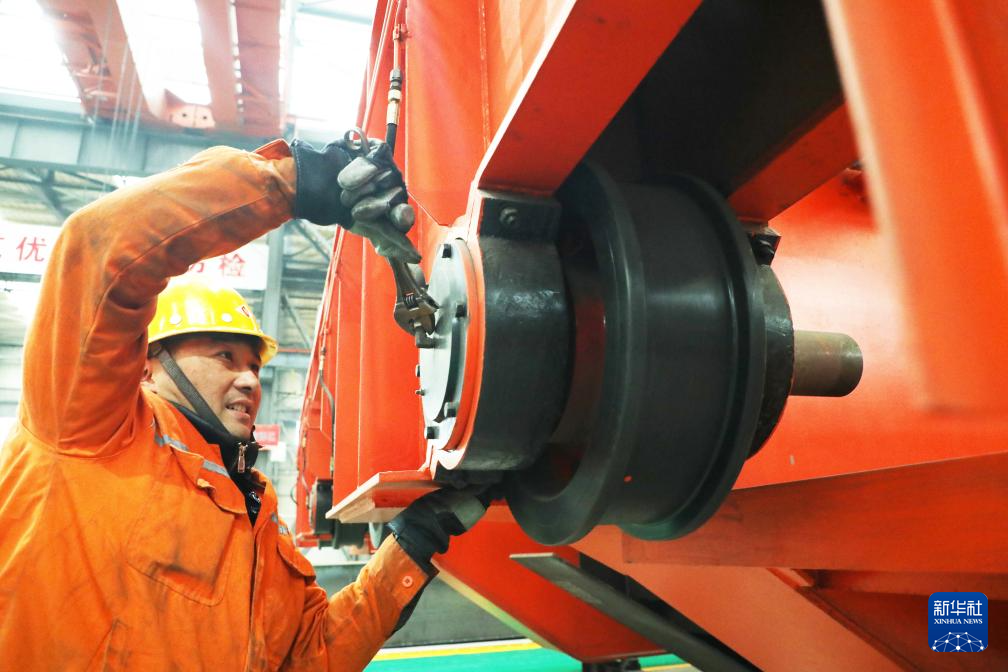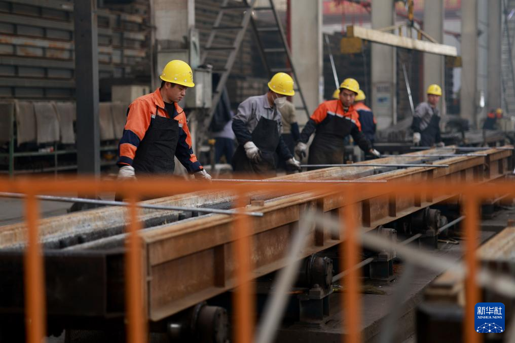 2月18日,在河北省内丘县一家铁路器材制造企业,员工在车间忙碌。新华社发(刘继东摄)