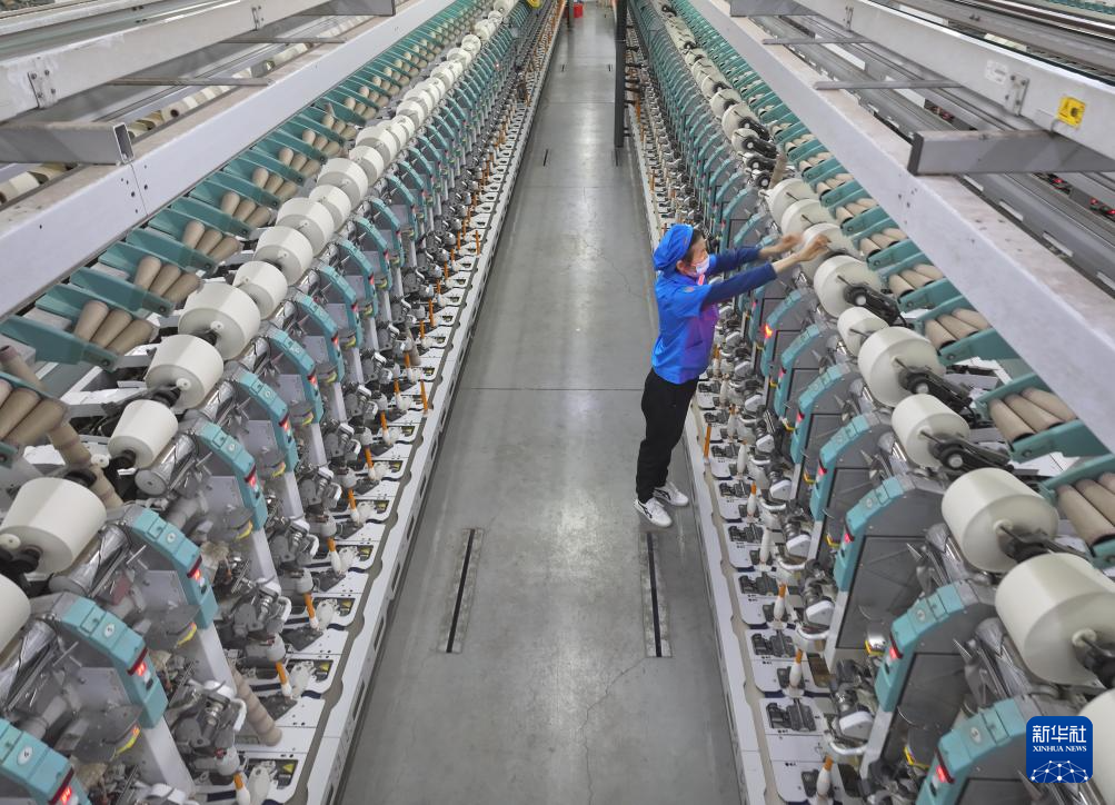 2月18日,在位于山东省青岛市即墨区的青岛颐和针织有限公司,工人在生产服装面料产品。新华社发(梁孝鹏摄)