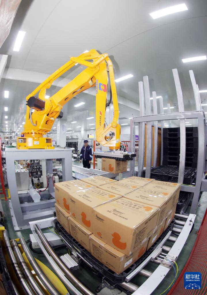 2月18日,工人在福建省泉州市洛江区一家卫生用品企业车间内忙碌。新华社发(张九强摄)