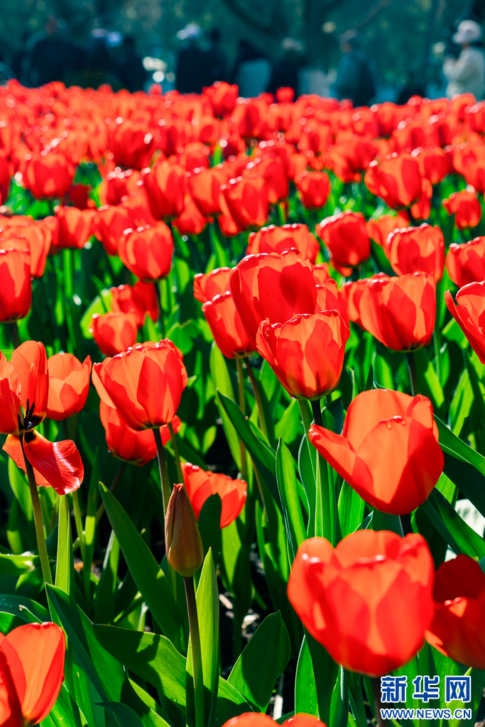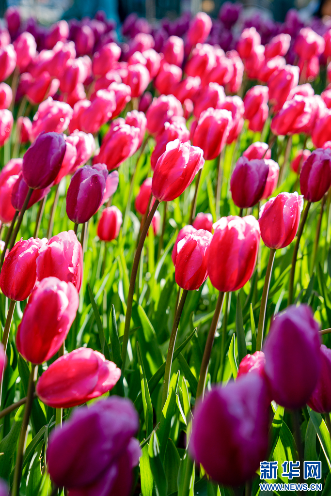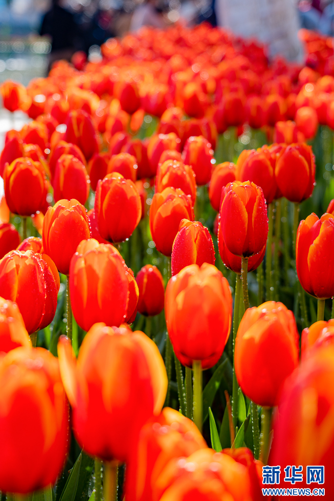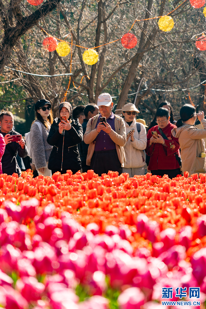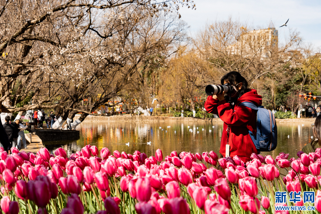 近日,云南省昆明市翠湖公园的郁金香竞相绽放,吸引不少游客前来观赏游览。(完)