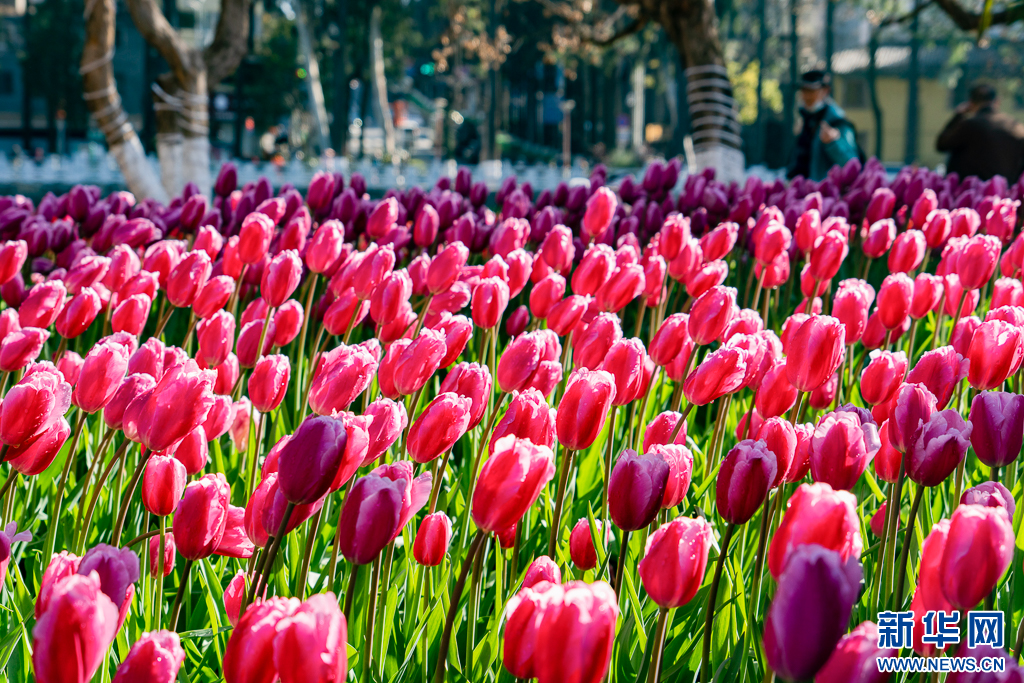 翠湖公园内绽放的郁金香(2月14日摄)。新华网发(郑益 摄)