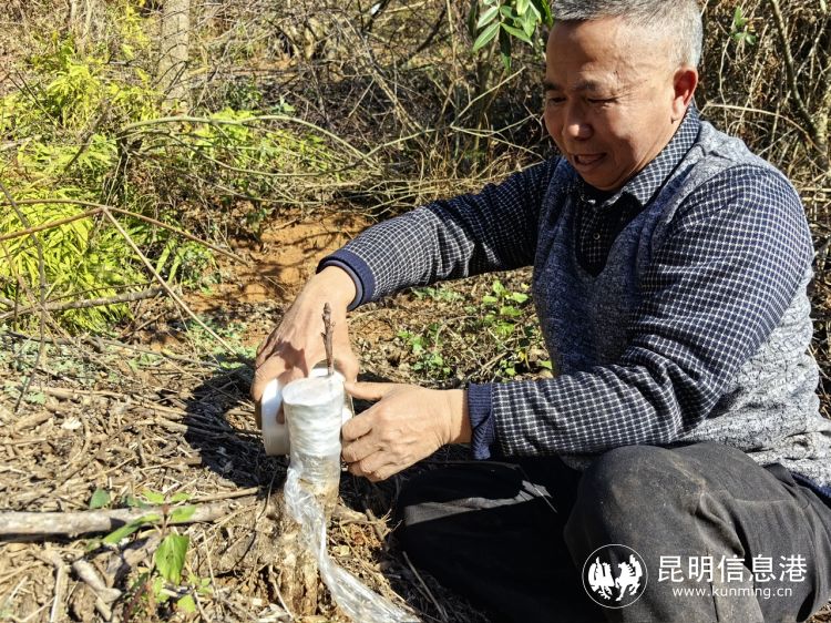 昆明信息港讯 记者段佳琪 通讯员李梅 春节假期刚一结束,位于呈贡区的赵家山村荒坡野岭呈一片繁忙景象。2月19日,郎家营社区党组织带领赵家山村党员、居民代表一行30人前往赵家山村山坡、崖壑,热火朝天地忙着给这片野樱桃树做桩、嫁接、封口保水。