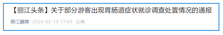 2月19日,丽江市卫生健康委发布关于部分游客出现胃肠道症状就诊调查处置情况的通报,详情如下: