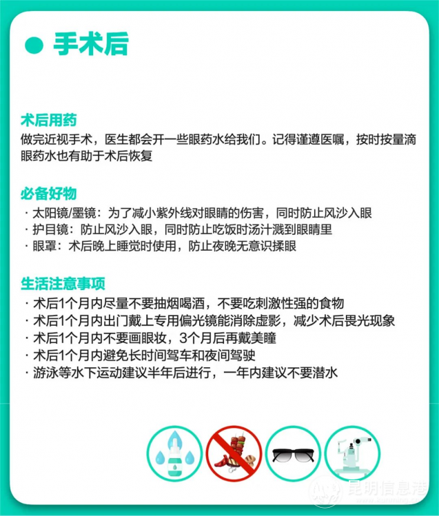 不过,昆明爱尔眼科医院也提醒,提前半年以上做完近视眼激光手术也不是高枕无忧,前提还要做好术后定期复查与护理,这样才能拥有稳定长久的好视力。在爱尔眼科,医生会要求患者术后一年内复查六次。分别是术后1天,术后1周,术后1月,术后3个月,术后6个月和术后1年。