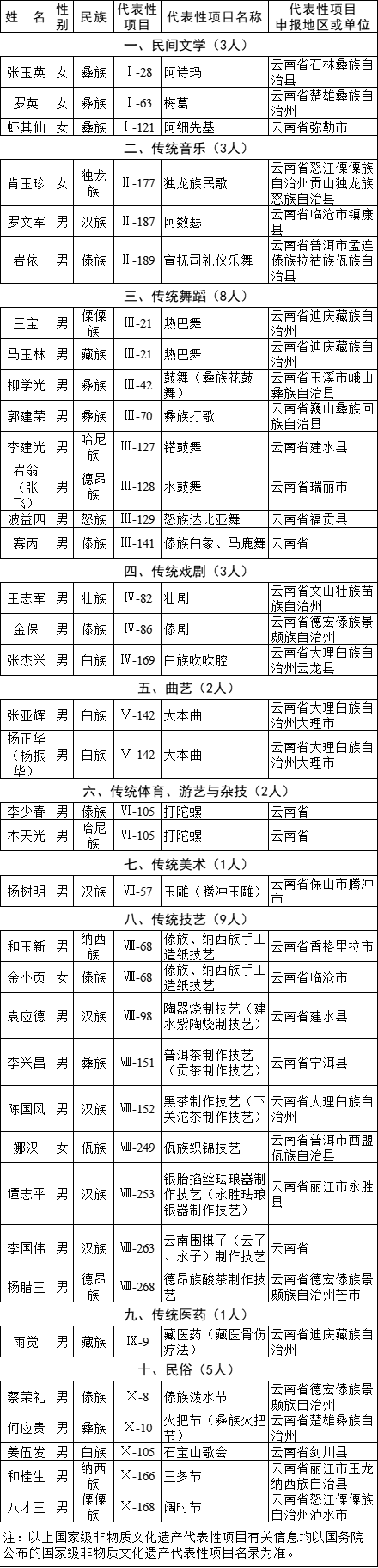 在全国31个省、自治区、直辖市和新疆生产建设兵团,香港特别行政区、澳门特别行政区,以及中央和国家机关有关部门推荐申报的基础上,文化和旅游部成立评审委员会,组建评审专家组,经材料复核、专家初评、申报人答辩、评审委员会审议,提出第六批国家级非物质文化遗产代表性传承人推荐人选名单(共958人),现予以公示。