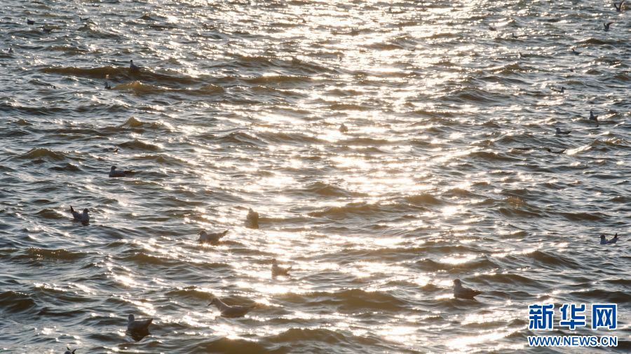 湖面上随波起伏的红嘴鸥(2月18日摄)。新华网 刘东 摄