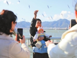 白天有红红火火的《鼓舞新春大巡游》,喜气洋洋的福禄寿喜财,夜幕降临有《嬉鱼闹新春》,春节期间《幻彩滇池烟花秀》更是天天上演,在夜幕下争相辉映。
