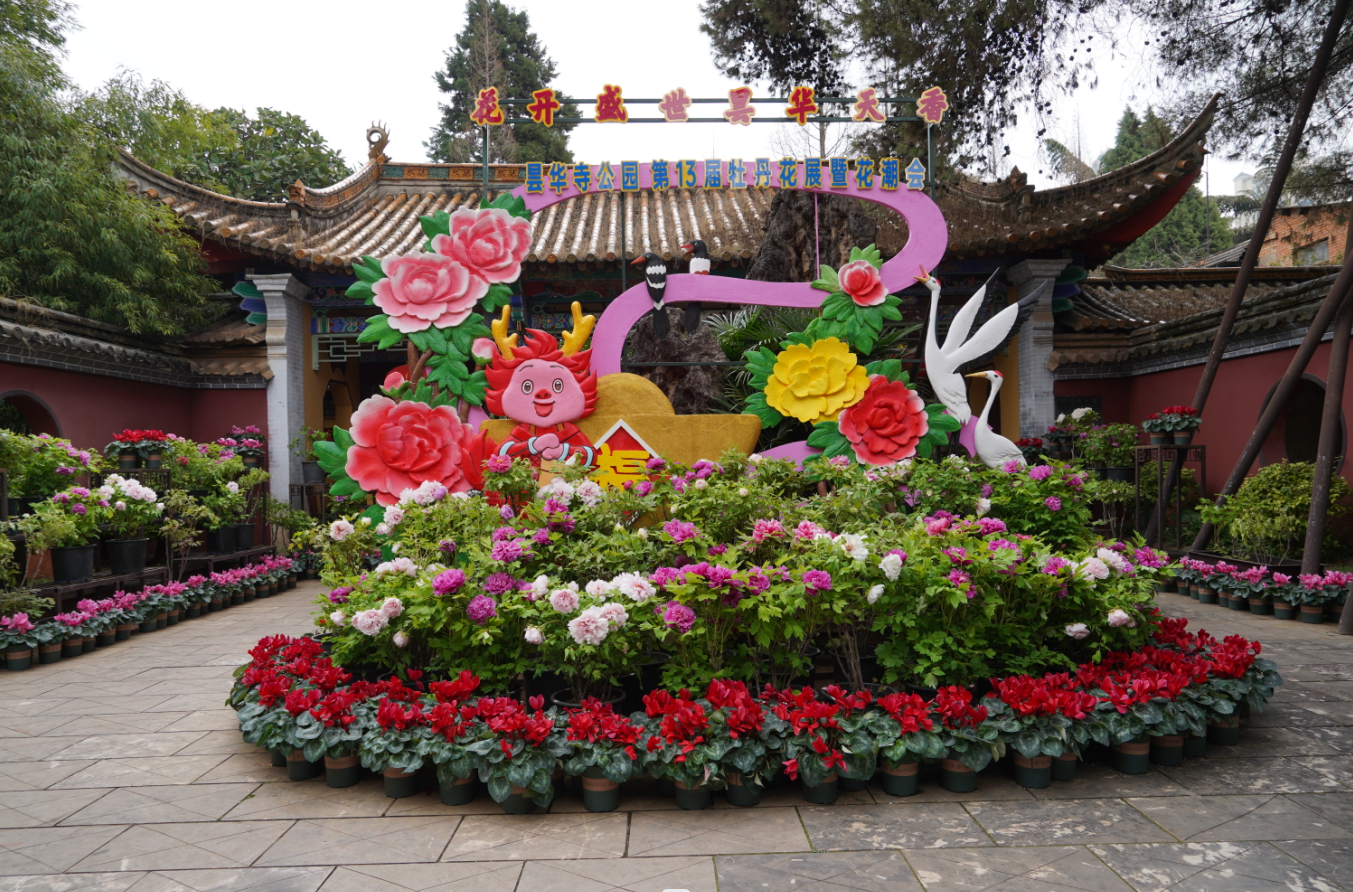 昙华寺公园则以“花妆花语”为主题,为庆祝2024年春节并迎接甲辰龙年的到来,精心打造了以牡丹花为核心的花园小品展点。展览结合牡丹文化和龙年生肖元素,通过布置花园,为游客打造了一个充满春节赏花和享受富贵氛围的场所。