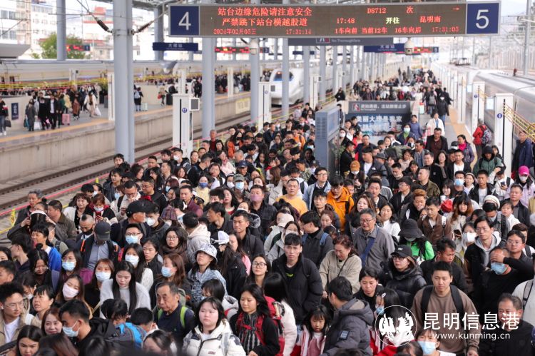 据统计,今年春运期间,国铁昆明局单日发送旅客量连续25天突破30万人次,连续8天单日发送旅客量突破40万人次。其中,2月15日中老铁路国内段旅客发送量超9万人次,丽江、香格里拉、小中甸等多个车站单日发送旅客量创开通运营以来的最好成绩;2月17日全局发送旅客48.3万人次,刷新春运单日发送旅客量历史纪录。