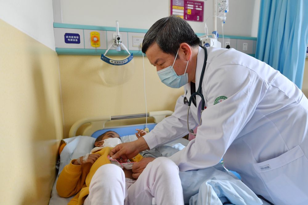 2月13日,在北京儿童医院保定医院,北京儿童医院干细胞移植科副主任秦茂权在查房。新华社记者 王晓 摄