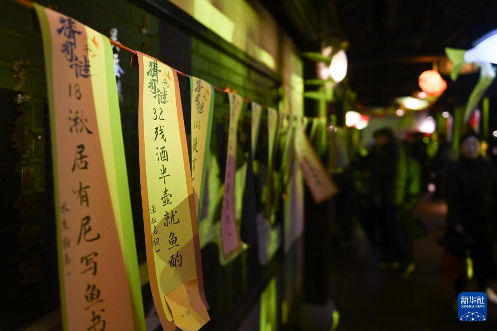 2月21日,人们在南浔区菱湖镇秀溪水街的长廊里猜灯谜。新华社记者 黄宗治 摄