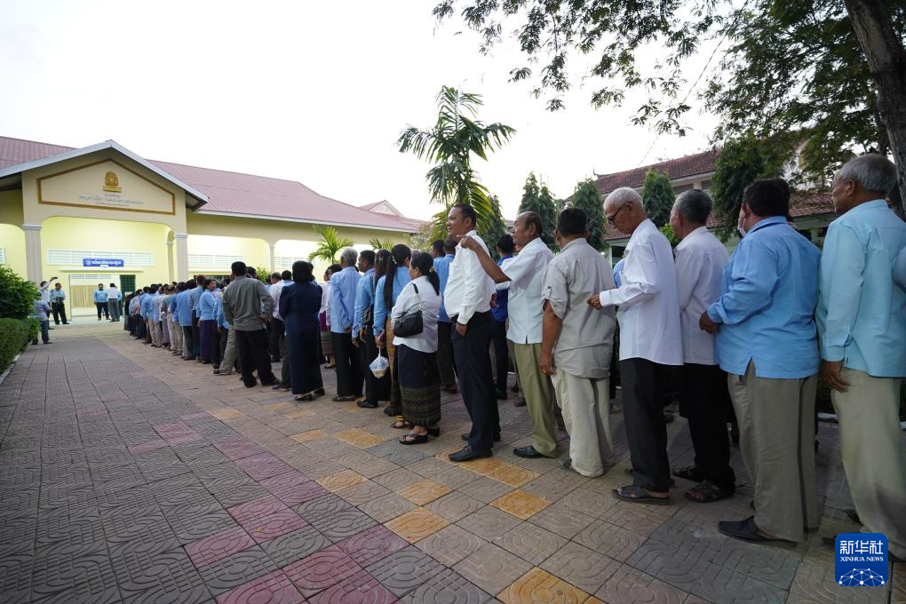 2月25日,在柬埔寨干丹省达克茂市,人们在投票站外排队等待投票。新华社发(李莱摄)