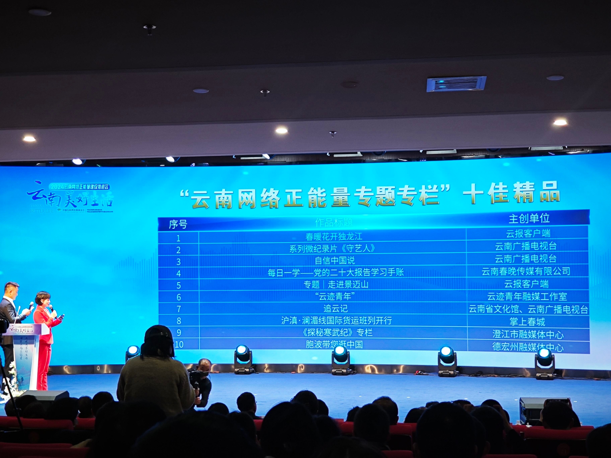 昆明市融媒体中心掌上春城“沪滇·澜湄线国际货运班列开行”入选“云南网络正能量专题专栏”十佳精品。