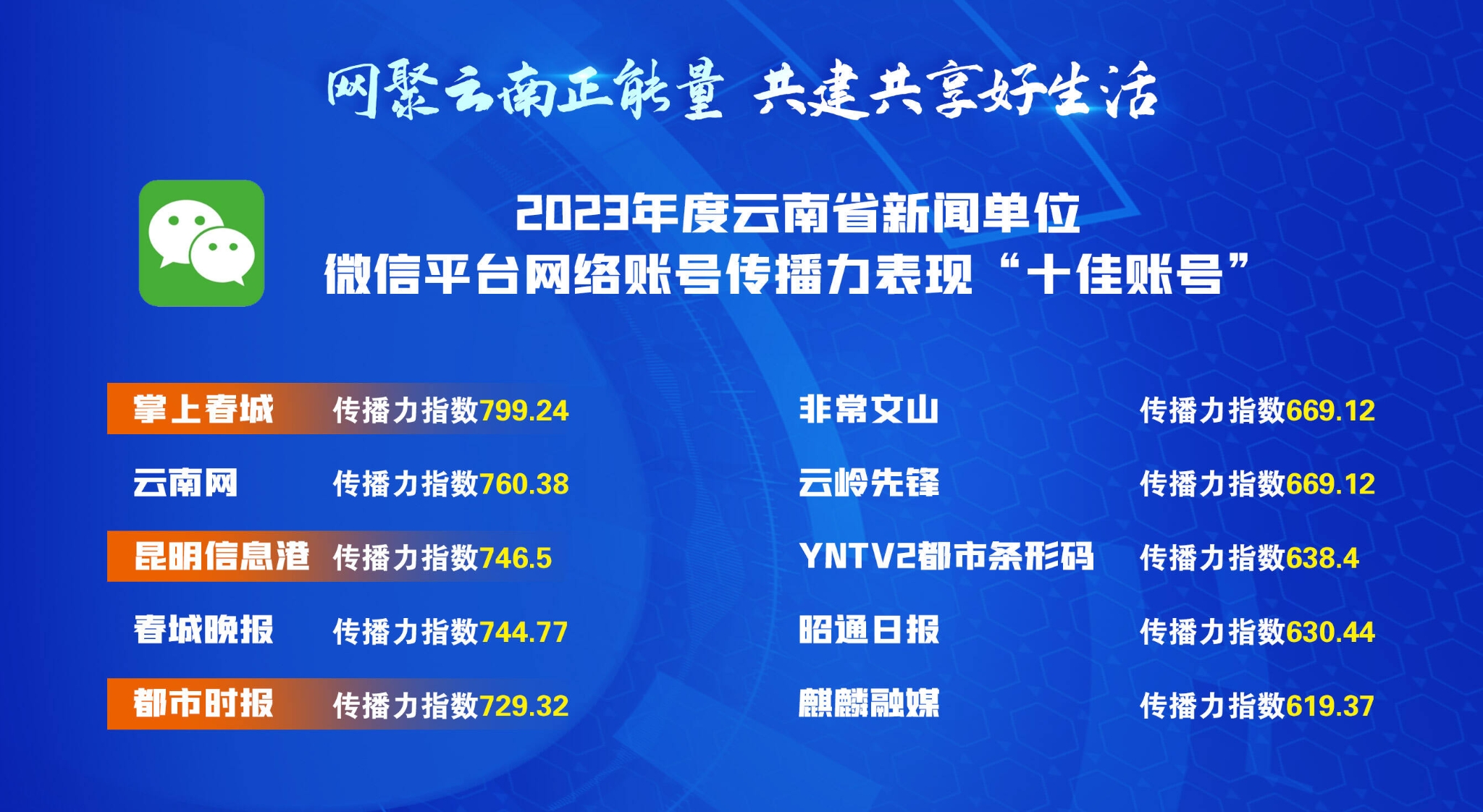 昆明市融媒体中心掌上春城、昆明信息港、都市时报获评2023年度云南省新闻单位微信平台网络账号传播力表现“十佳账号”;