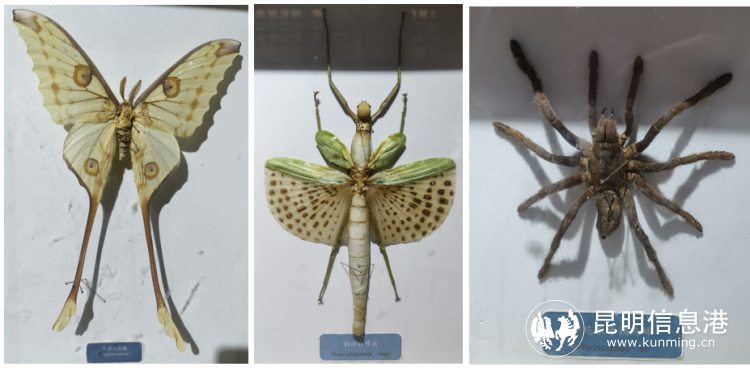 昆明信息港讯 记者杨雁 你见过翅膀上长着一身猫头鹰眼睛,披着猫头鹰颜色皮毛的“猫头鹰环蝶”吗?又是否见过翅膀上有形似写上去的88两个数字的“数字88涡蛱蝶”?是否见过拖着长长尾巴的“长尾大蚕蛾”?有着美丽羽翼的“豹斑竹节虫”;还有长着长牙的“印尼长牙捕鸟蛛”;似一张人脸,又似关公面颊的来自马来西亚的“人面蝽”……