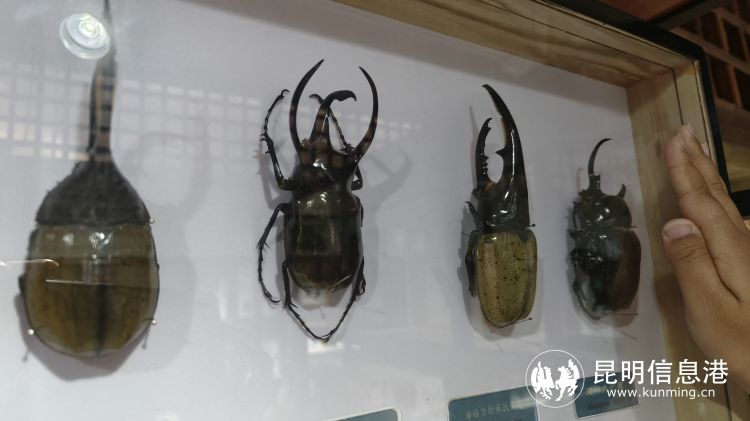 昆虫展区的饲养员兼讲解员龙明珠介绍,这个展览中的所有昆虫展品全部来自黄先生几十年的个人收藏。集中展示了世界各地珍稀昆虫标本1000多种,有蝴蝶类、锹甲类、兜虫类、金龟子类等,包括最美的蝴蝶光明女神蝶;世界上最大的蛾子乌桕大蚕蛾;著名拟态昆虫竹节虫、枯叶蝶、叶䗛;世界上最重的甲虫亚克提恩大兜虫;最长臂的天牛等,让参观者在长知识的同时,大开眼界,感叹自然界的奇妙。