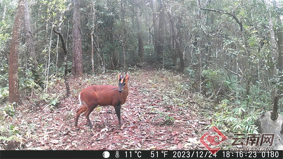 云南景谷威远江省级自然保护区监测到国家二级保护动物赤麂活动影像
