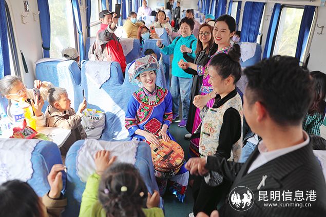 为丰富旅客出行体验,国铁昆明局昆明客运段的“金花”乘务员也穿上民族服饰,在昆明开往罗平的列车上为旅客进行手鼓表演、编花环等活动,与旅客们一起载歌载舞。乘车的旅客纷纷拿出手机拍照,记录下这难忘瞬间。“没想到在列车上可以一边欣赏着窗外的花海,一边编花环,这个旅行体验太特别了。”旅客王淑眉高兴地将刚刚编制好的花环戴在小女儿头上,一家人拍照留念。