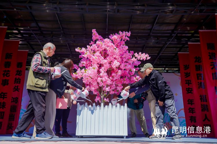而以樱花为引,带出的回忆故事更将现场气氛带向高潮。开幕式上,7位圆通风华70年“我与圆通山的故事”主题征集活动获奖代表,以自己的视角讲述了圆通山70年来的变迁,那些与家人、朋友在圆通山一同留下的美好时光也被娓娓道来,引得现场掌声阵阵。随后,在主持人的引导下7位获奖代表一同向“樱花树”启动装置进行浇灌,宣告昆明市第二十四届樱花节正式启动。