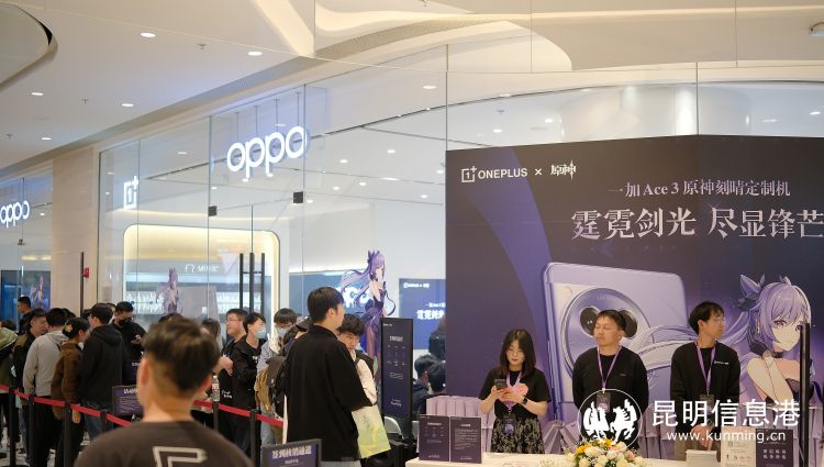 昆明信息港讯 记者王素晶 3月2日下午2时,一加Ace3原神刻晴定制机Pop-up快闪活动在昆明OPPO官方授权服务体验中心恒隆广场店热力开启,完成预订的300名用户早早来到现场排起长队抢购新机,“霆霓剑光