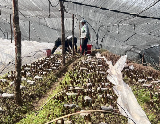 关房村注重发挥村“两委”干部引路人作用,实施“村党总支书记带动党员、党员带动群众”双带机制,由党员带头示范种、带头传帮带,打消群众顾虑,激发群众参与羊肚菌产业发展热情。在关房村党总支书记、党员的带动下,羊肚菌种植户从6户增加到26户。目前,关房村羊肚菌种植面积为54亩,预估年产鲜羊肚菌1.5万斤,年收入可达150余万元。另外,羊肚菌种植带动周边40人就近务工,每人年均增收2000元左右,为农户家门口稳定就业提供保障,进一步拓宽群众增收渠道。