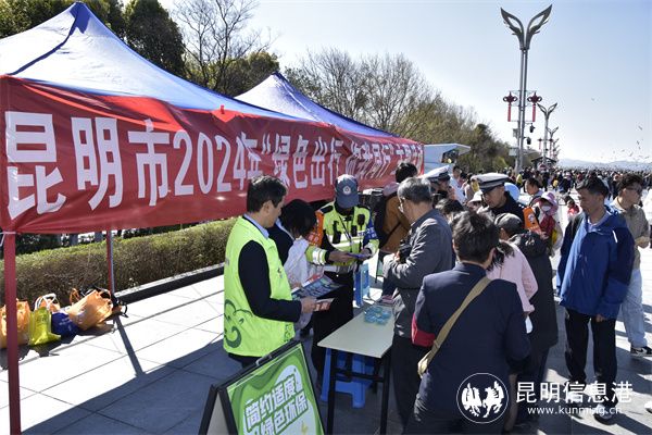 期间,民警专门在海埂大坝观鸥点设置了“绿色出行 你我同行”主题活动展区,摆放了《绿色出行 文明观鸥》《绿色出行 从我做起》系列展板和《“观鸥”公交出行指南》《绿色出行倡议书》宣传折页、安全头盔等宣传品,并特意为游客准备了贴有“绿色出行、文明观鸥”标识的鸥粮,借游客投喂海鸥的过程中把绿色出行的理念散播出去。活动现场吸引了大量游客的积极参与。