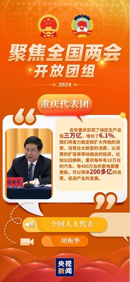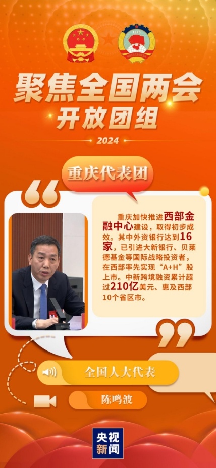 记者从活动上了解到,重庆将继续推动成渝地区双城经济圈建设,今年将共同抓好100个合作事项、300个重大项目落地见效,持续优化成渝地区空间结构、完善功能体系、提升整体实力。此外,活动上,全国人大代表围绕媒体关注的西部陆海新通道建设、西部金融中心建设、数字重庆建设、科创成果如何转化成新质生产力等热点话题进行了回答。