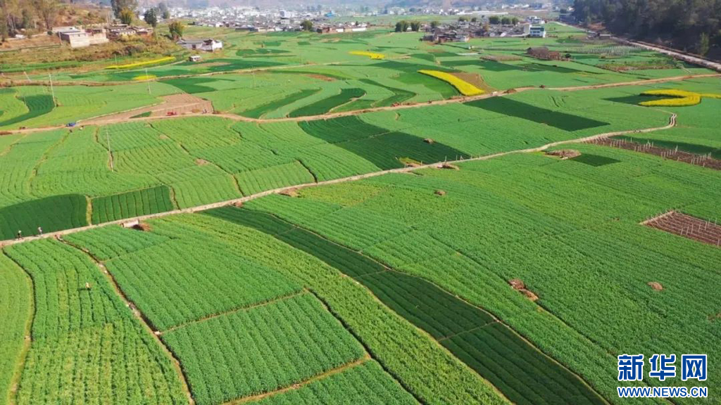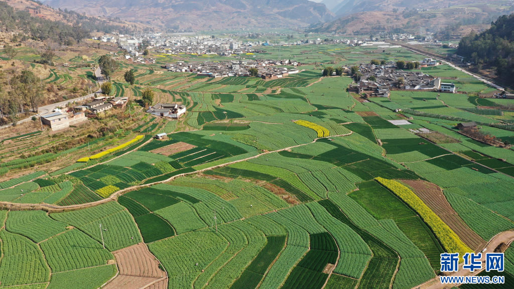 航拍平川镇广袤的田野(2月22日摄)。新华网发(宾川县融媒体中心 供图)