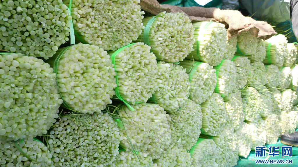 码放整齐的蒜台(2月22日摄)。新华网发(宾川县融媒体中心 供图)