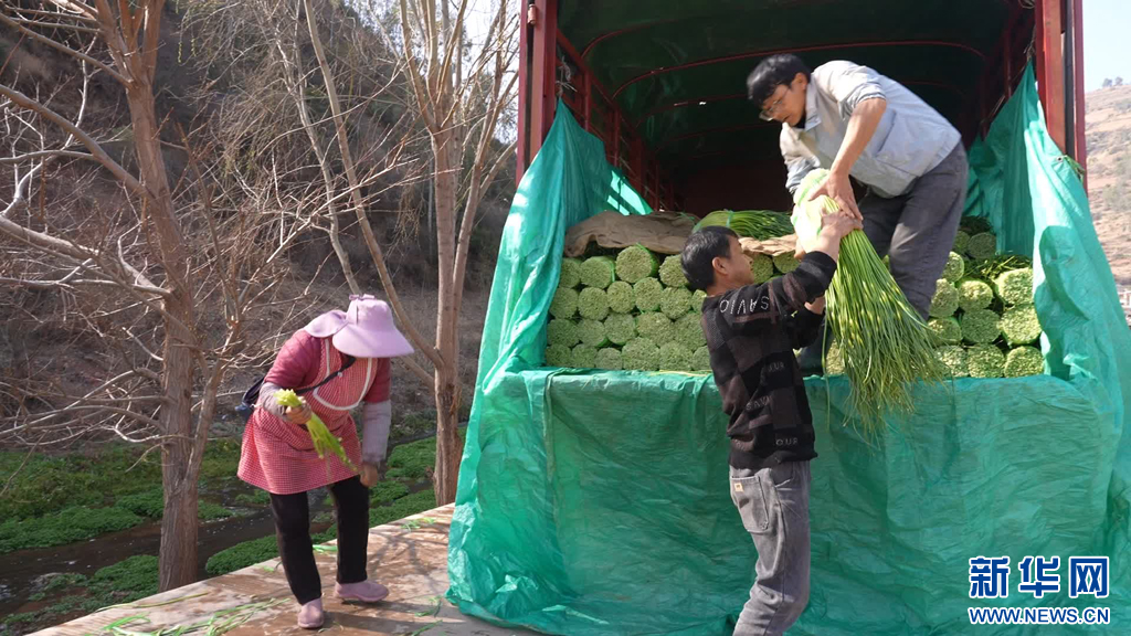 运输蒜台(2月22日摄)。新华网发(宾川县融媒体中心 供图)