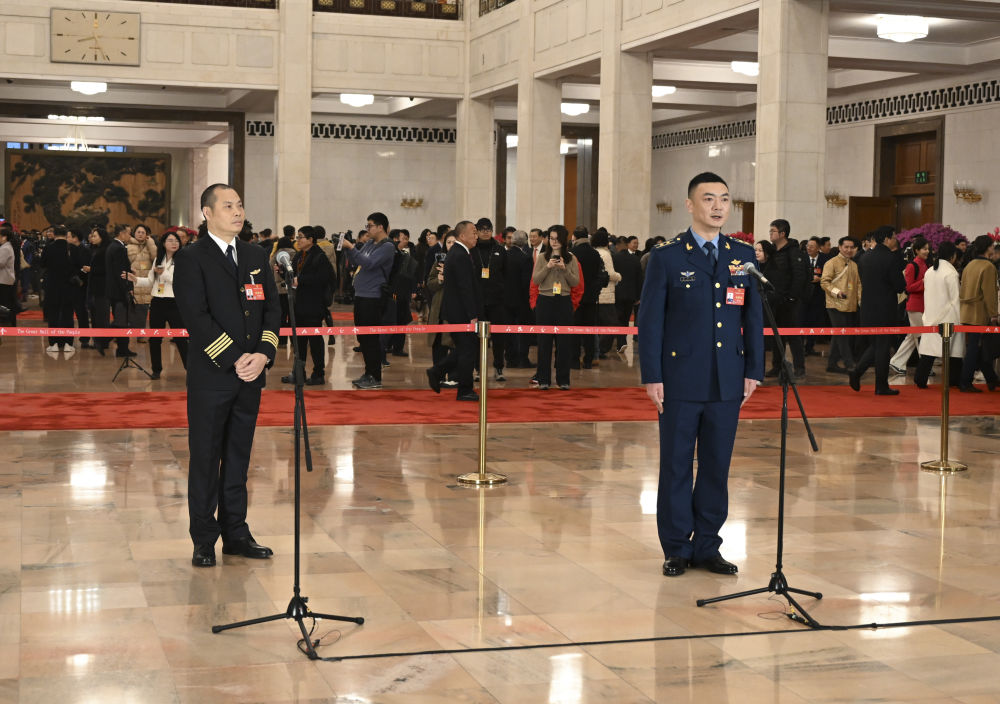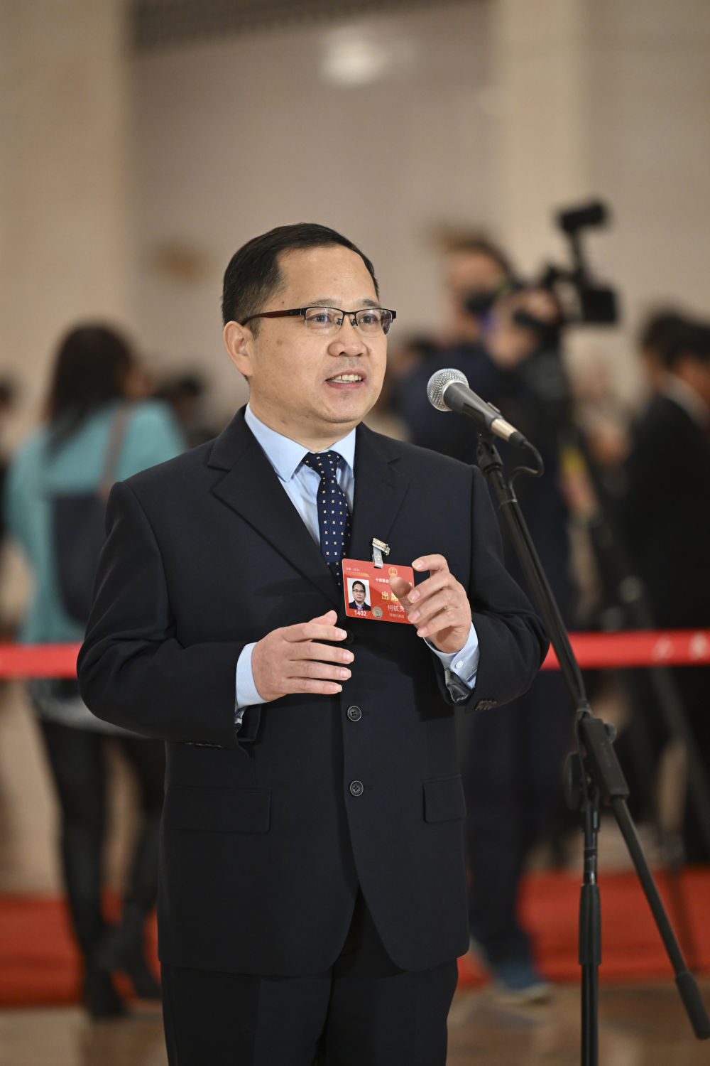 3月5日举行的首场“代表通道”集中采访活动上,全国人大代表杭侃接受媒体采访。