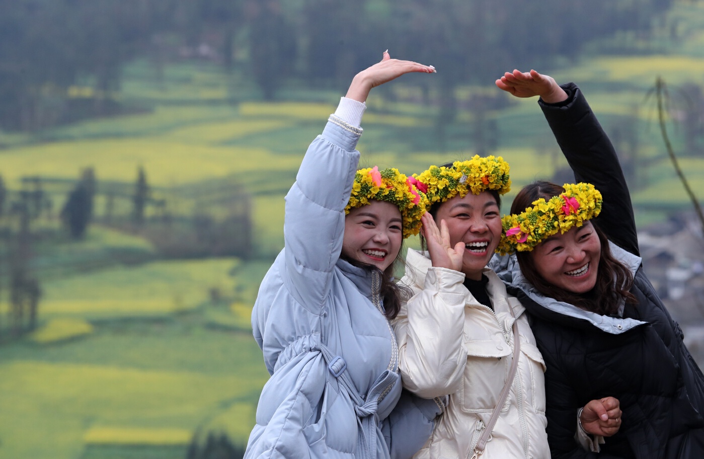 曲靖罗平油菜花海景观吸引游客打卡拍照