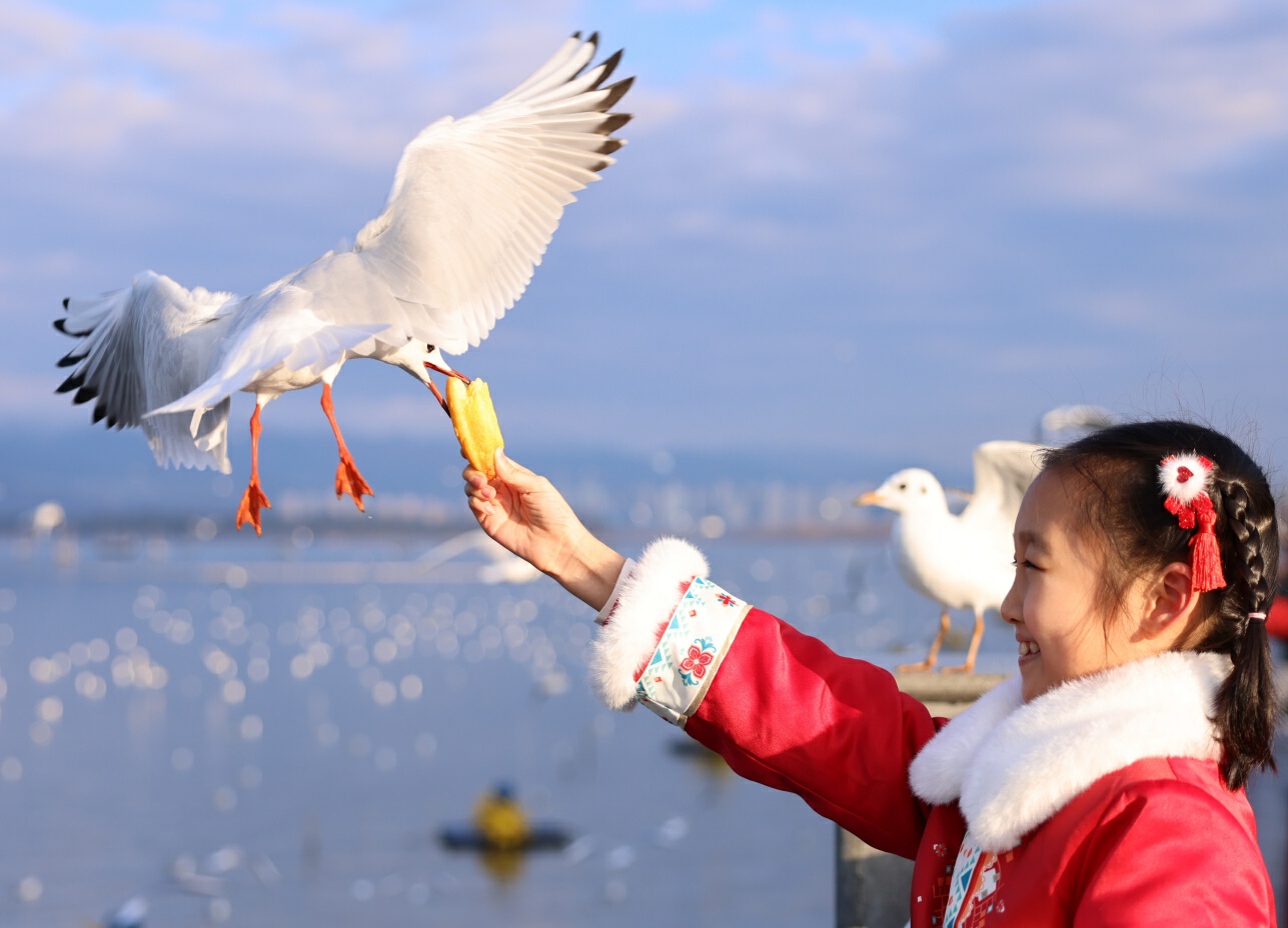 昆明滇池边的红嘴鸥