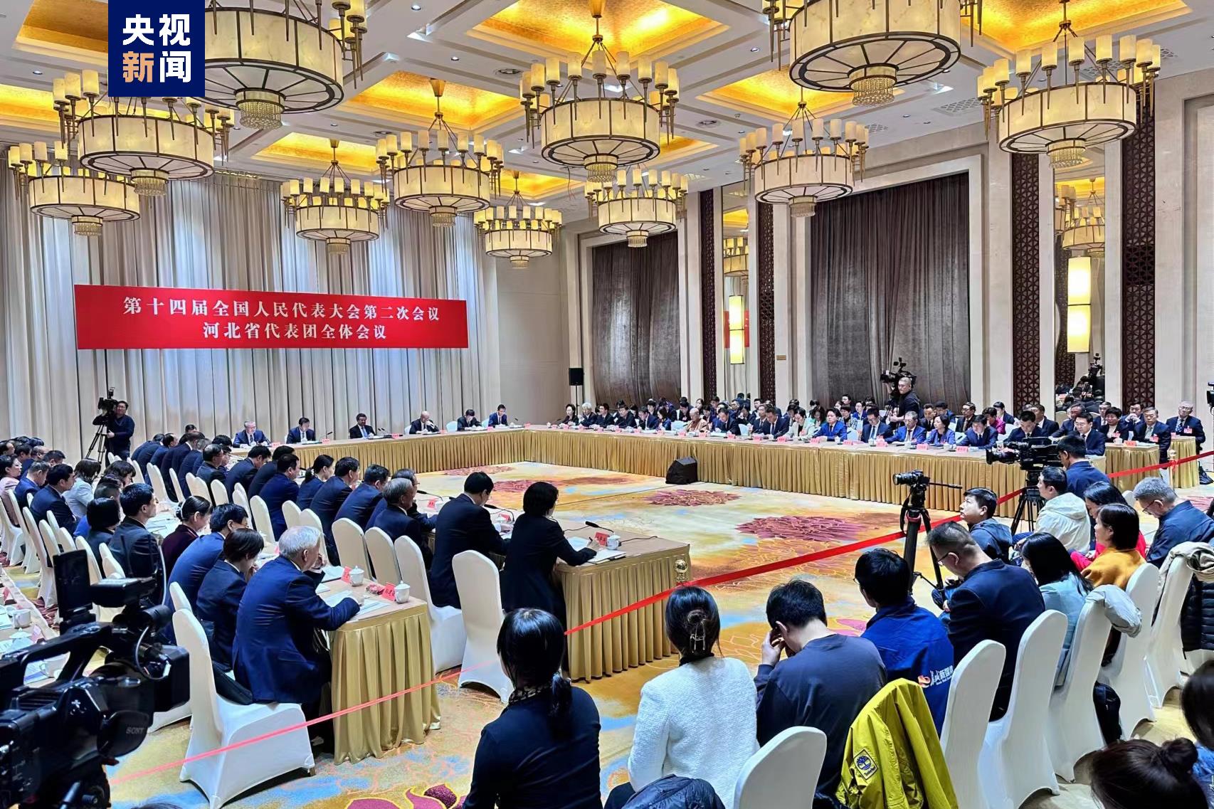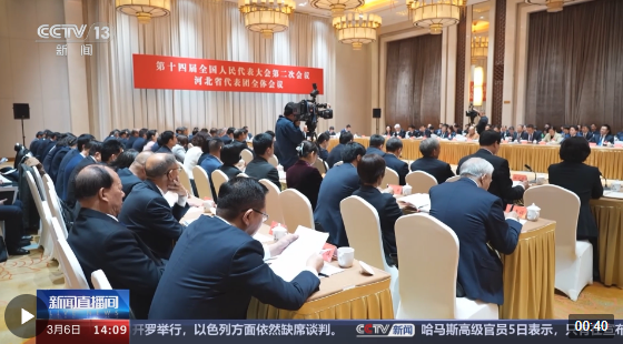 今天(3月6日)上午9时,河北代表团举行开放团组活动。活动分为两个阶段,第一阶段,河北省代表团审议政府工作报告,记者在会场全程旁听;第二阶段,就媒体关心的雄安新区建设、优化营商环境、粮食安全等相关问题,代表们在现场回答记者提问。