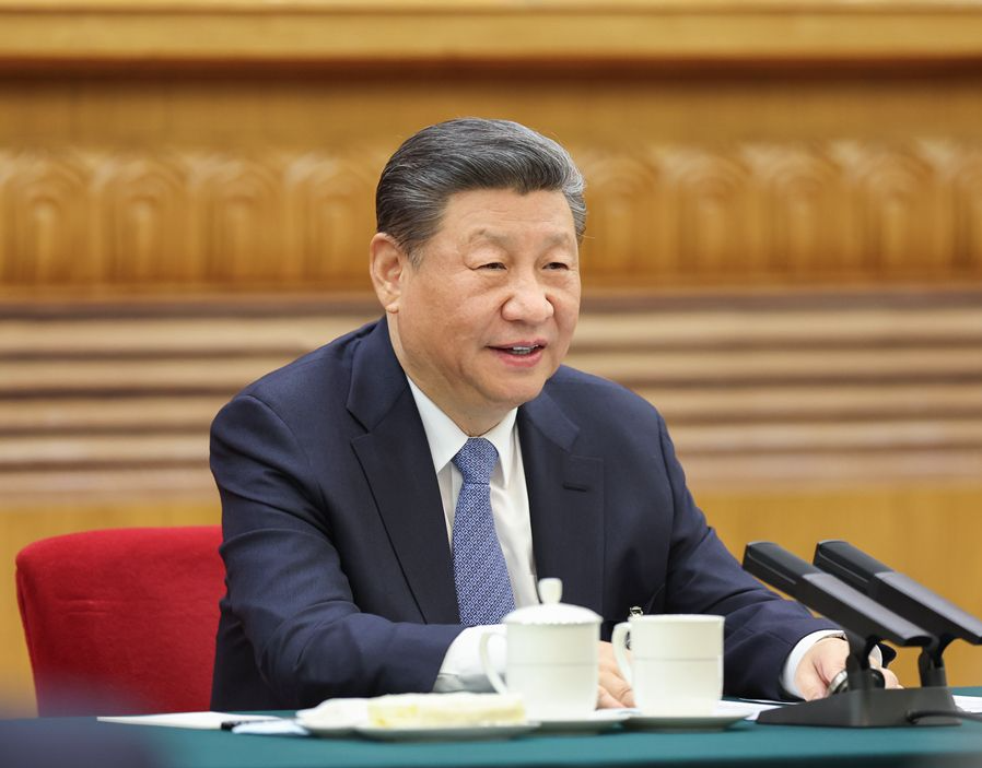 ▲3月5日,中共中央总书记、国家主席、中央军委主席习近平参加他所在的十四届全国人大二次会议江苏代表团审议。新华社图