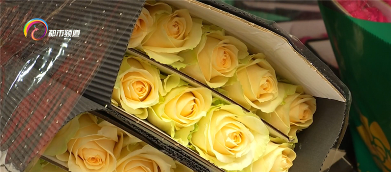 昆明国际花卉拍卖交易中心 品控中心质检员 岳喜郭:“现在我正在对下午拍卖的货品进行质检,这两天的货品,花形、花色都明显高于冬季,这些货品都是为三八妇女节准备的。”