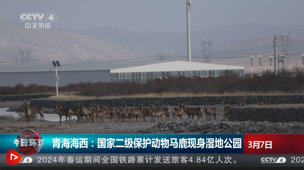 青海海西:国家二级保护动物马鹿现身湿地公园