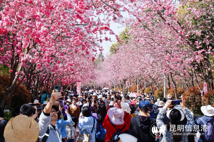 昆明信息港讯 记者段佳琪 3月9日上午,昆明市呈贡区“繁花呈贡 ‘樱’你而美”2024洛龙公园第一届樱花节开幕。
