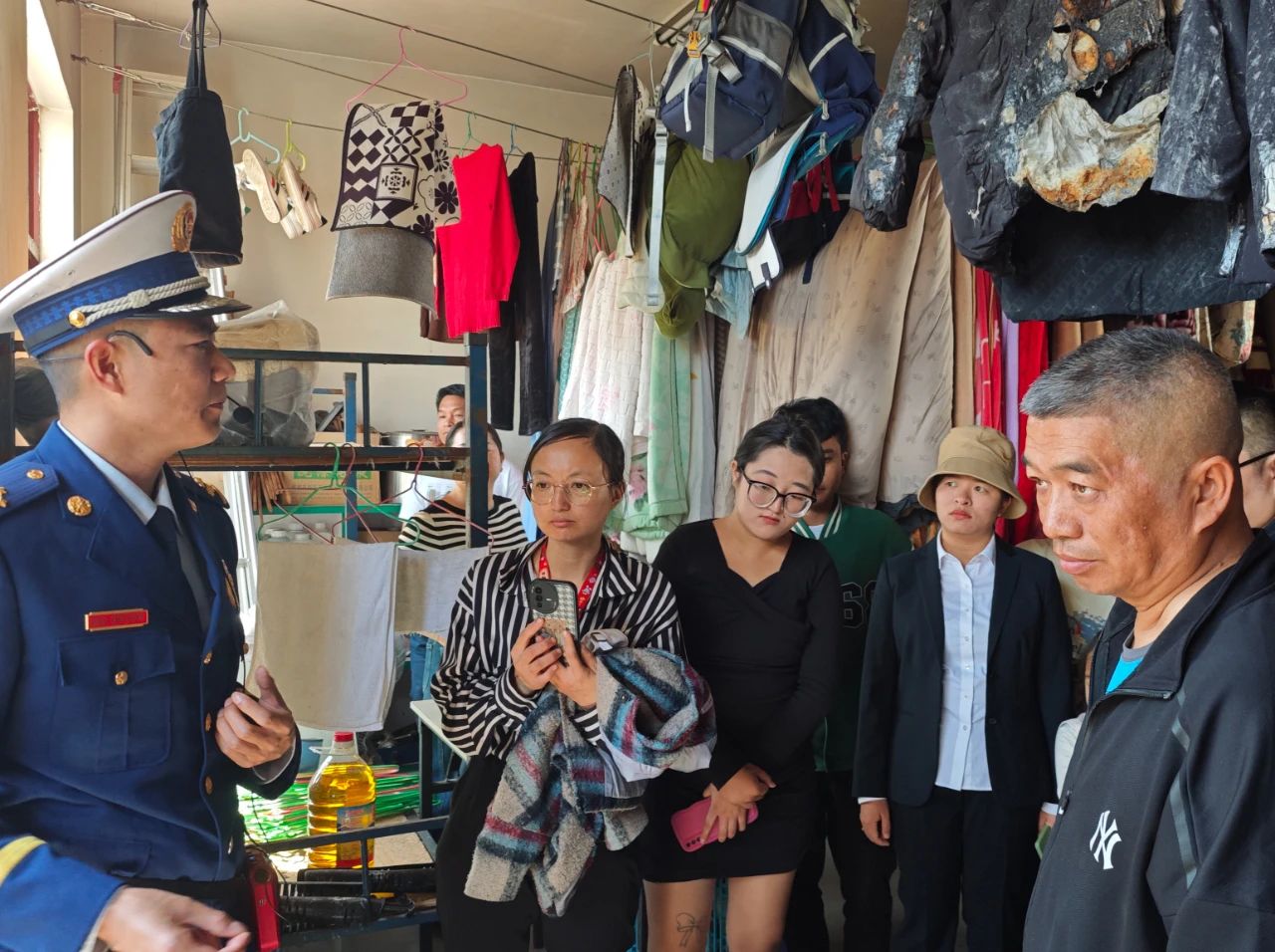 现场教学结束后,各参与部门还联合对服装店、冷冻食品店等进行了实地巡查,现场指出并要求立行立改各类隐患。