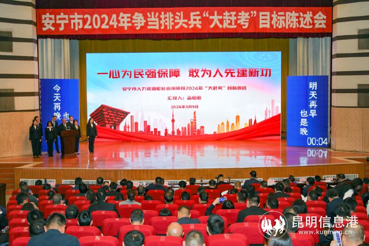 今年的安宁市“大赶考”目标陈述会,有安宁市58家单位现场陈述争当排头兵“大赶考”年度目标,各单位积极表态,将以实干实绩奋力推动高质量发展,争当经济社会发展排头兵。
