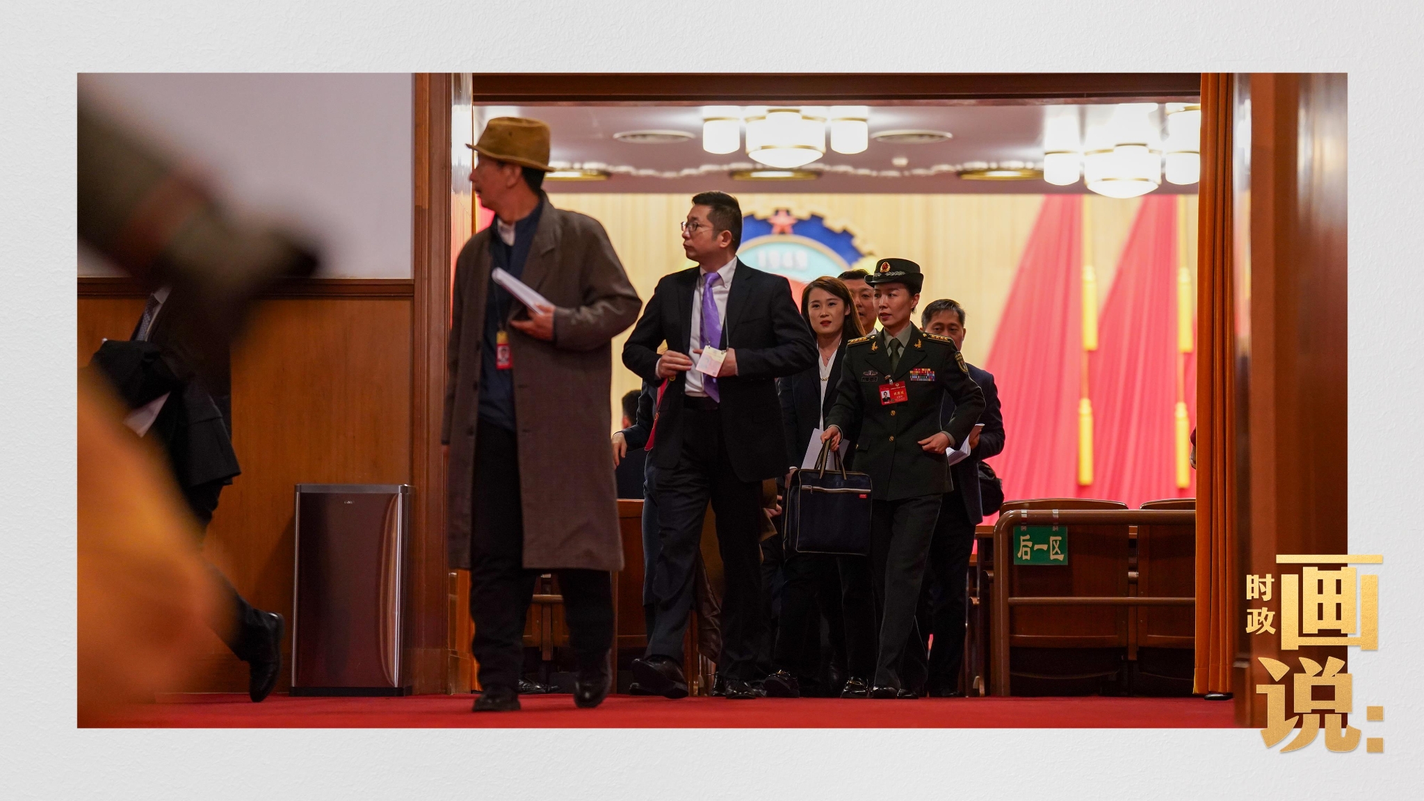 △代表、委员们步入会场,静谧的东大厅一时间人流涌动。