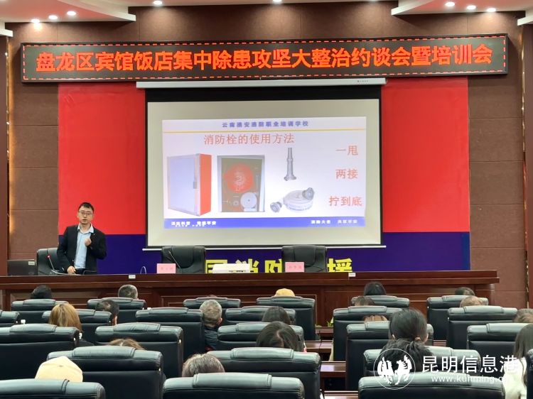 昆明信息港讯 记者邓国梅 为增强消防安全意识,普及消防安全知识,提高消防技能和应对突发火灾事件的能力,避免和减少火灾事故的发生,3月13日,盘龙区宾馆饭店集中除患攻坚大整治约谈会暨培训会在盘龙区消防救援大队报告厅举行,全区宾馆饭店负责人、工作人员共计240人参加培训。