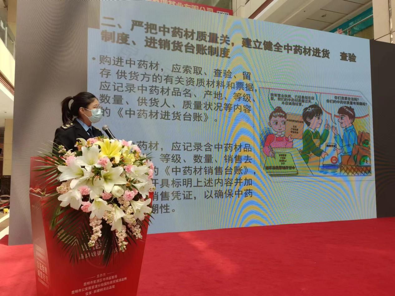 当天上午,启动仪式上,官渡区市场监督管理局向30家“放心消费在昆明”区级示范单位授牌。下午,官渡区市场监督管理局对市场内150余户中药材经营户代表进行“中药材质量管理培训”。工作人员详细解读了《中华人民共和国药品管理法》,围绕中药材质量管理要求、经营者义务与法律责任等内容,宣传国家有关中药材专业市场管理的政策规定及国家明令禁止经营的毒性中药材、国家重点保护野生动植物中药材品种,教育引导经营者亮照经营、明码标价,严把中药材质量关,增强诚信经营意识,维护消费者合法权益。通过现场送法宣传,进一步强化中药材经营户主体责任意识、法律意识、风险意识,提升经营户自我管理、自我约束的能力,推动守法经营、诚信经营,加强中药材质量管理,为规范经营行为打下了坚实基础。