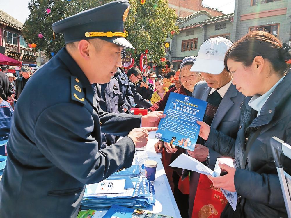 工作人员向昭阳区市民普及消费维权知识。 本报记者 沈迅 摄